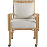 The Newport Dining and Game Chair provides ultimate comfort and convenience, designed with a stunning rattan body, lush upholstered cushions, and smartly finished with leg casters.