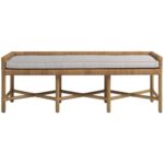 Boasting a gorgeous blending of textures, the Escape Pull Up Bench features an upholstered cushion nestled within a casually chic wicker body with subtle crisscross detailing.