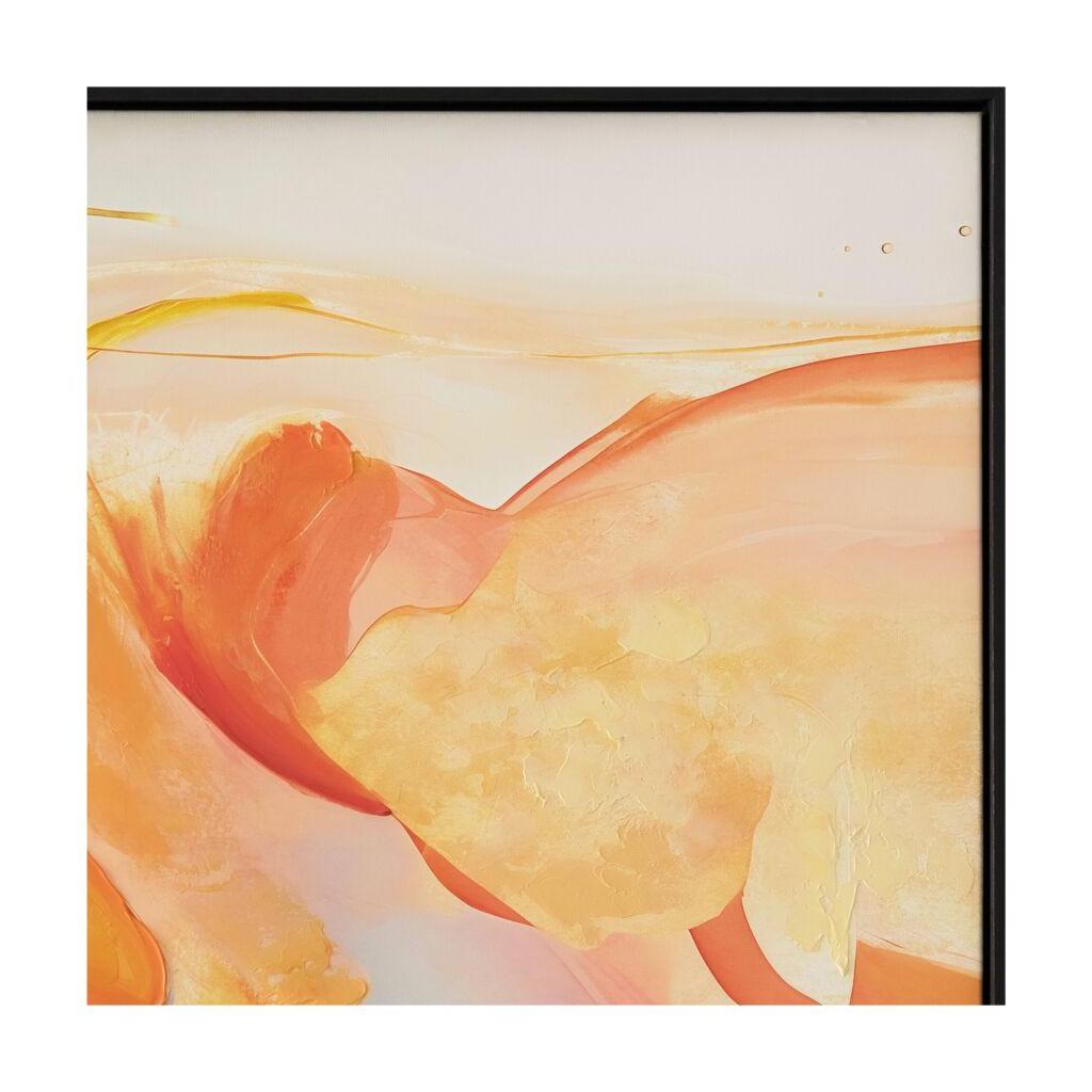 Because neutrals need a day off. Eternal is a confident study in contrast—bold brushstrokes, saturated hues, and rich tension between warm reds, deep blues, and soft fades. The composition feels instinctive, expressive, and intentionally unpolished—an abstract snapshot of motion and mood. Framed cleanly to let the color take center stage, it’s the piece that brings the room to life. Quiet? Not its thing.