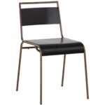 With an industrial inspired design, this stackable dining chair is a perfect addition for urban settings. Features a seat crafted from powder-coated matte black stainless steel. Completed with a brass stainless steel frame.