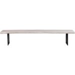 With a live edge, the Evans dining bench playfully pairs with a variety of dining styles. Made with white-washed solid acacia wood and dark iron legs, this bench features its own unique combination of knots and grains. Whether you’re looking for an industrial or contemporary modern piece, this table will be the perfect fit.