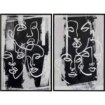 This diptych is replete with expression and urban flair. Each piece is printed on textured canvas with the painted visages looking in opposite directions. Features black wood floater frames with a gold trim.