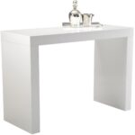 Distinctly urban bar height table with room for two stools on each side. Now available in a stunning high gloss white finish.