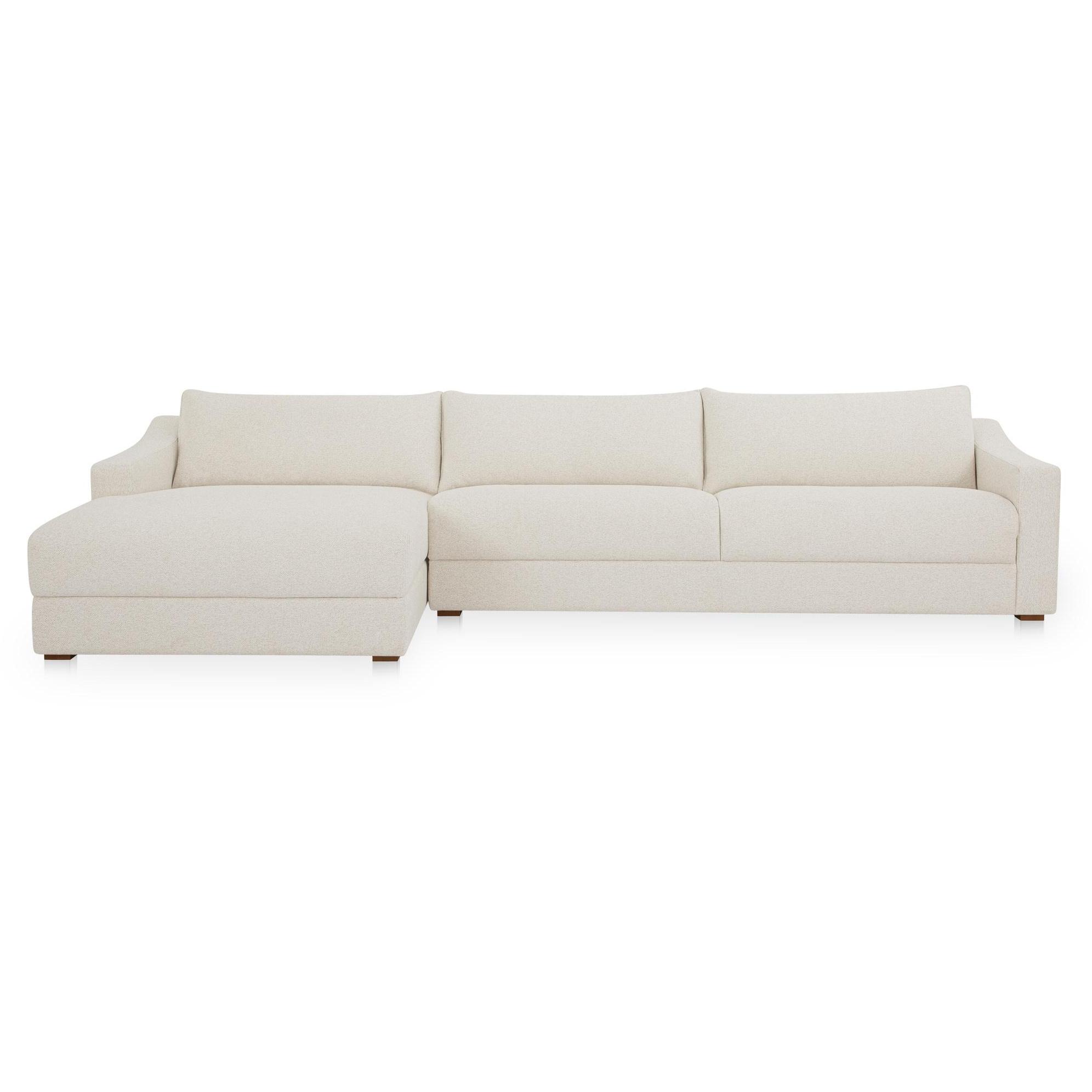 When your living room calls for more than a sofa. The Farrow Sectional combines deep, fiber-filled cushions with a gentle arm slope and piped edges for polish. Upholstered in flecked oat with a textured finish, it’s fully wrapped and grounded on an invisible base for a seamless look. Designed with the left-facing chaise, this sectional adapts from traditional to contemporary with timeless ease.