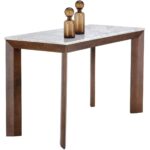A bold counter table designed with the Parsons table style in mind. Features clean angles and crafted with a white marble top and solid rubber wood legs. As marble is a natural material, unique veining, pitting, fissures, micro-cracks and colour variations are all characteristics that add to the uniqueness and beauty of each piece.
