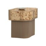 With its freeform silhouette and bold burl grain, the Fern Nightstand makes a striking addition to any space. The asymmetrical top is wrapped in natural burl veneer, showcasing organic, one-of-a-kind patterns. A single push-to-open drawer is seamlessly integrated into the form, set above a ribbed resin base with a lacquered finish.