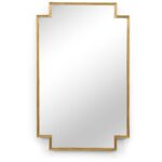 The Fiona Mirror features an antique gold finish on a rectangular iron frame with cut out corners. The simple lines create a wall mirror ideal for a contemporary or traditional design. Mount over a living room chest, bedroom dresser, or entryway console to open up the space and reflect light throughout the room.