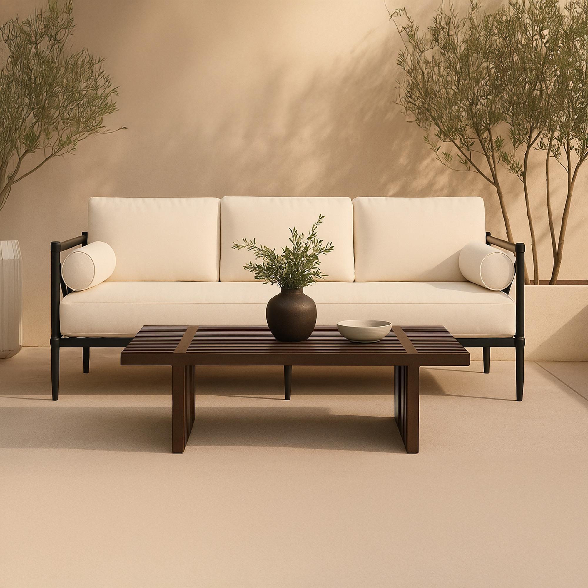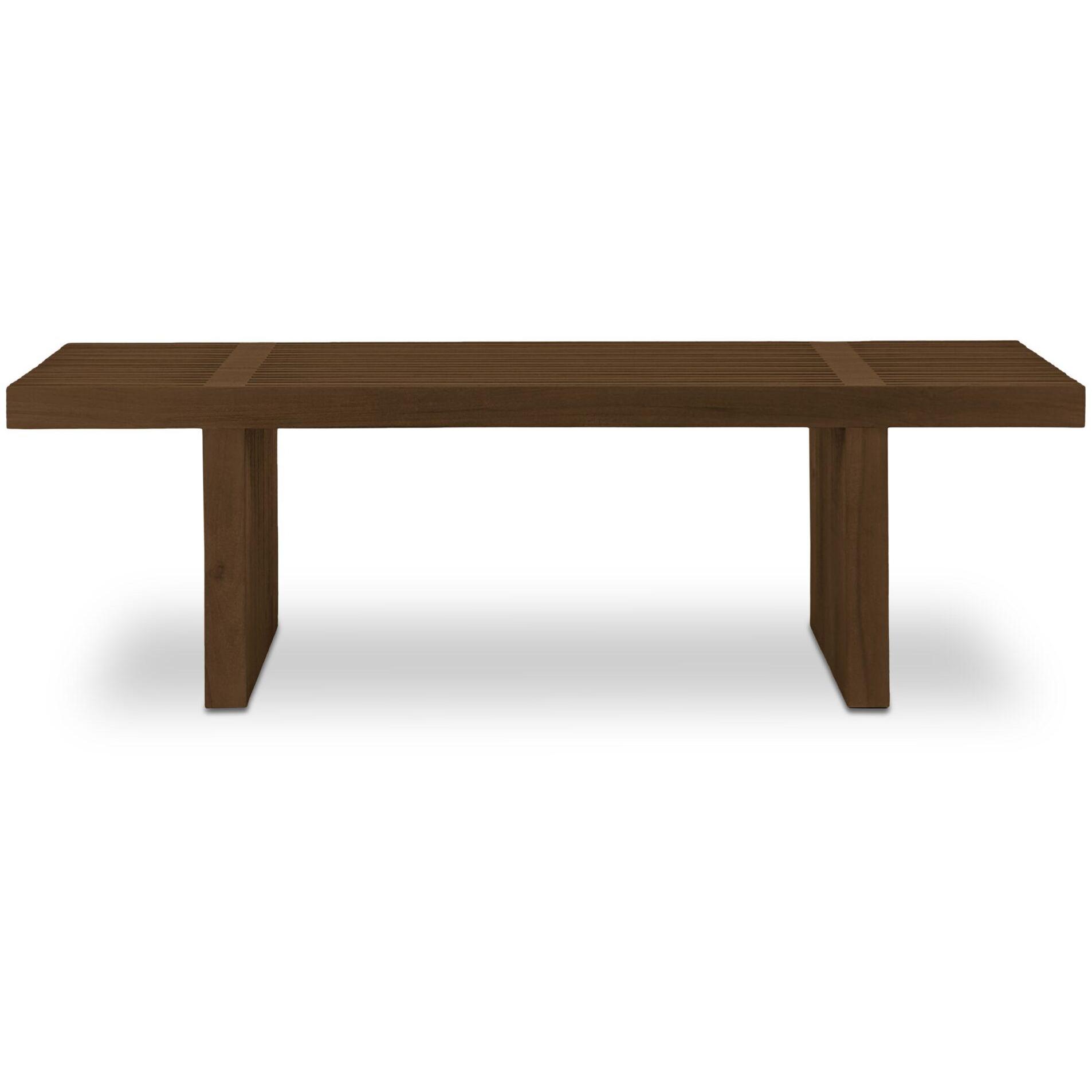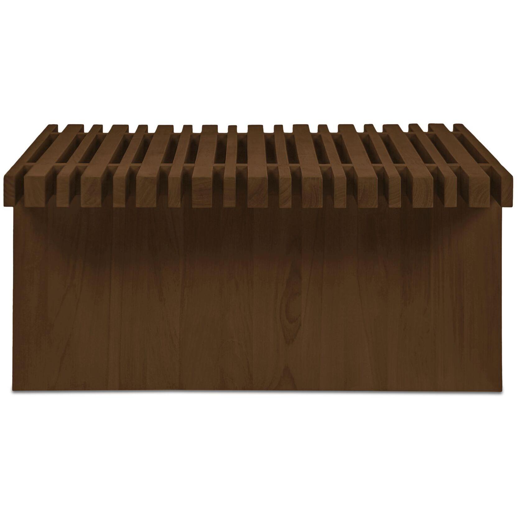 Fletcher keeps it low-key, with solid teak construction that brings quiet strength and natural warmth. Made from solid teak and finished in a toasted tone, it balances substance with softness. A slatted top plays with proportion, mixing wide and narrow planks for texture that feels thoughtful. Slatted, grounded, good to go.