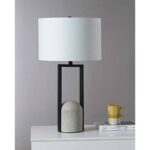 This lamp design brings a structural quality to the minimalist interior space. The addition of concrete to its iron and cotton structure feels modern and organic. Set a pair of them on bedside tables or living room console for a symmetrical look.