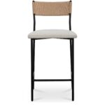 Crafted with an exquisite mix of materials, the Foley counter stool effortlessly merges rustic allure with contemporary grace. Its slender metal frame supports an easy-to-maintain seat upholstered in sumptuous bouclé Performance fabric, while the curved paper rope back evokes an essence of tranquility and warmth, offering a compelling invitation to linger.