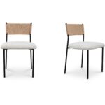 Crafted with an exquisite mix of materials, the Foley dining chair effortlessly merges rustic allure with contemporary grace. Its slender metal frame supports an easy-to-maintain seat upholstered in sumptuous bouclé Performance fabric, while the curved paper rope back evokes an essence of tranquility and warmth, offering a compelling invitation to linger.