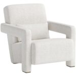 Strong angles and plush seating allow the Forester Lounge Chair to stand out in any living space. Upholstered in copenhagen olive fabric with sculpted arms that give the reclining seat a floating appearance. Metal accents at the back of the armrests match the powder coated antique gold stainless steel base to finish the look.