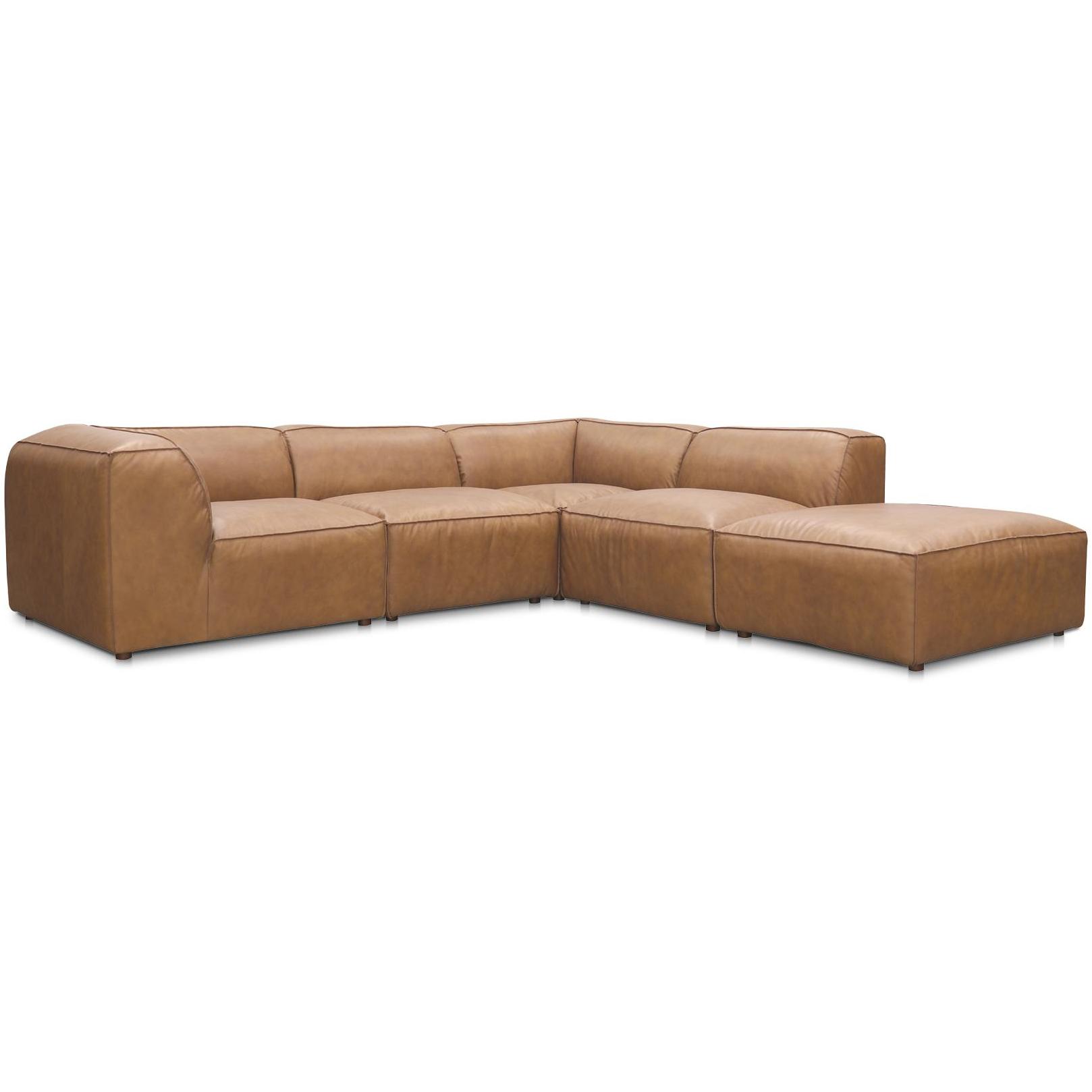 The Form modular sectional is a perfect example of how different shapes and moveable pieces can support a social setting, comfortable lounging, as well as a casual workday. Configure Form into a collage of comfort as the collection includes slipper and corner chairs, as well as an ottoman. All items contribute to a build for flexible living, whether you require an entire L sectional, cozy nook, or a more private relaxation corner. Contemporary in both style and function, Form features top-grain leather upholstery that will age into a beautiful patina, reverse stitching accents throughout, and emphasis placed on its plump, slightly rounded silhouette with feather and fiber-fill cushioning.