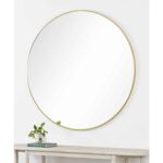 Set atop a vanity or entryway table, this round mirror adds fresh angles and dimensions to the home. The thin gold iron frame bringing a beaming tone to the space it rests within. With a 48-inch circumference, its size only enhances its opulent quality.