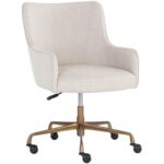 This compact barrel back office chair will add rustic and mid-century modern styling to any workspace. Stocked in our vintage black faux leather with a rustic bronze aluminum base. Finished with added castors for mobility. Handle With Care: This design has been crafted with faux leather. Faux leather is manufactured to reflect the natural characteristics of leather; as such, colour variations, markings, wrinkles, grooves, and light scratches are appreciated characteristics. No two pieces will be alike.