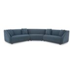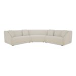 The Fraser sectional’s contemporary modular design infuses the elegance of gentle slopes with linear precision, harmoniously merging soft curves and angular forms into its 60s and 70s-inspired aesthetic. Crafted on a minimalist plinth base and upholstered in sumptuous 100% polyester, foam and fiber seating invites serene repose.