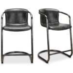 Add the Freeman Counter Stool to any kitchen to create some originality in your design. It has a modern industrial look with a rustic black top-grain leather and iron framing.