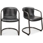 Add the Freeman Dining Chair to create some originality in your design. It has a modern industrial look with a rustic black top-grain leather and iron framing.
