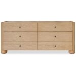 The Gibson 6 drawer dresser’s fluid design seamlessly integrates the leg panel into the frame, creating a captivating visual flow. Crafted from solid oak with beautifully grained burl veneer, this piece marries durability with sophistication. Playful lip detailing and 6 soft-close drawers add unexpected charm with its timeless appeal and meticulous craftsmanship.