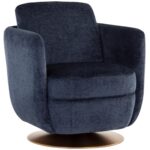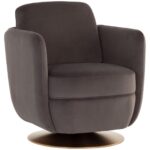 Add a compelling touch of contemporary style with this eye-catching swivel lounge chair. Stocked in meg ash fabric and completed with a round, antique gold stainless steel base. Also available in bergen navy fabric. Not available for sale in Canada.