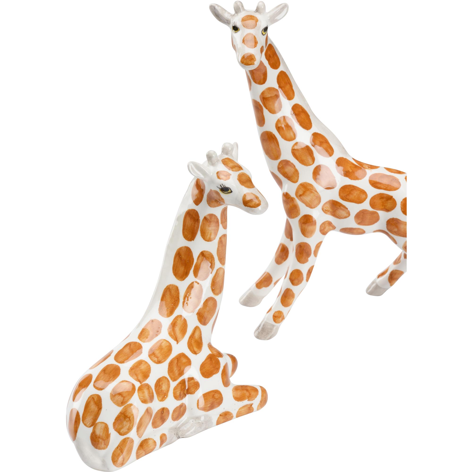 This playful pair of giraffes in hand painted Italian glazed ceramic are deal for display on tabletops or shelves.