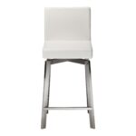 This counter stool has sleek white upholstery, a stylish contemporary design, and a swivel seat for extra comfort.