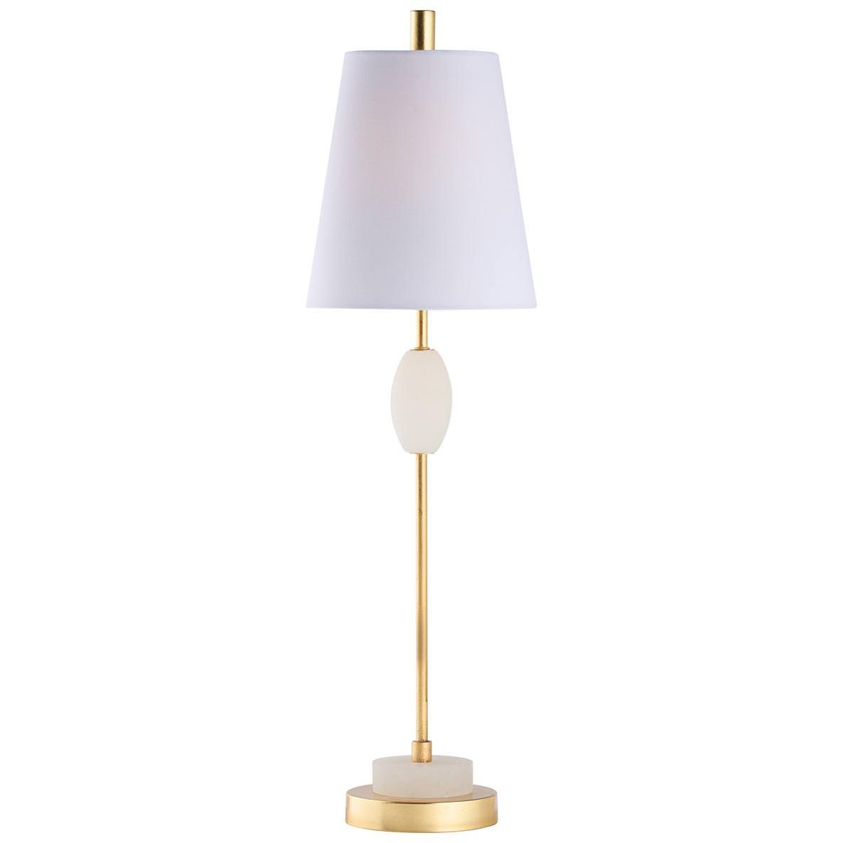 Sleek, refined, and effortlessly elegant — the Glenda Table Lamp embodies modern sophistication with a touch of classic charm. Featuring a slim, gold-finished stem accented by a smooth alabaster detail and resting on a coordinating marble base, this lamp exudes understated luxury. The crisp white tapered shade diffuses light beautifully, creating a soft, inviting glow.