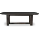 The Glenn Oval dining table makes an exquisite statement with meticulous joinery detailing, a thick tabletop with beveled edges, and an oval shape. Crafted from durable, solid neem wood with a matte finish, it features a functional structure bar for stability, merging robust craftsmanship with a balanced, timeless appeal.