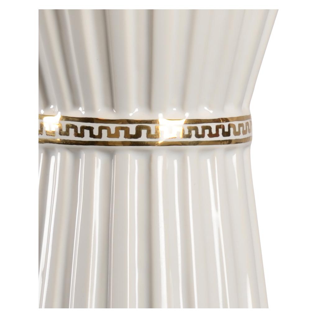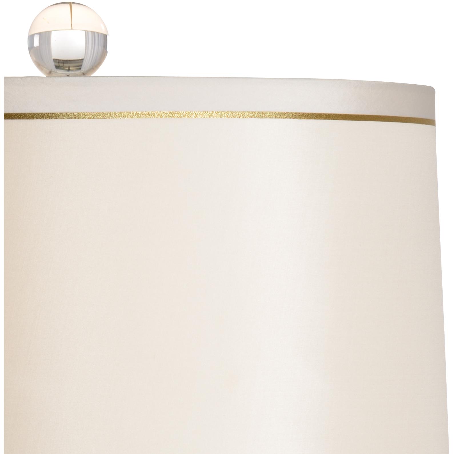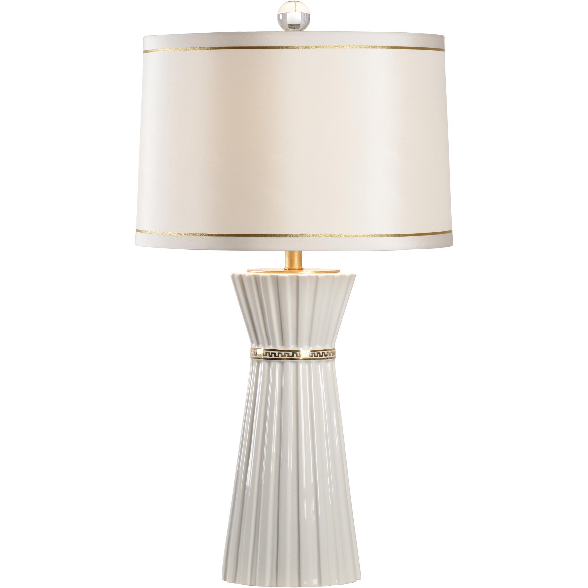 Add a touch of classic elegance to your space with our Gold Faithful Lamp. This beautifully crafted lamp showcases an hourglass silhouette that brings timeless style and sophistication to any room. The fluting detail enhances the lamp’s graceful shape, creating a sense of movement and depth. At the centerpiece, a hand-painted Greek key motif provides a nod to ancient artistry, adding a layer of cultural richness and intricate design. Crowning this elegant base is an off-white silk shade that softly diffuses light, casting a warm and inviting glow. The luxurious silk shade pairs perfectly with the detailed base, enhancing the lamp’s overall aesthetic while ensuring it integrates seamlessly into a variety of decor styles.