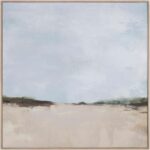 Grasslands depicts a vast landscape. The painterly-like quality adds an air of romanticism to the rural scenes of nature. Soft, muted colors create a serene and comforting setting for the viewer, while the pine frame is stained in warm brown for a sentimental finish.