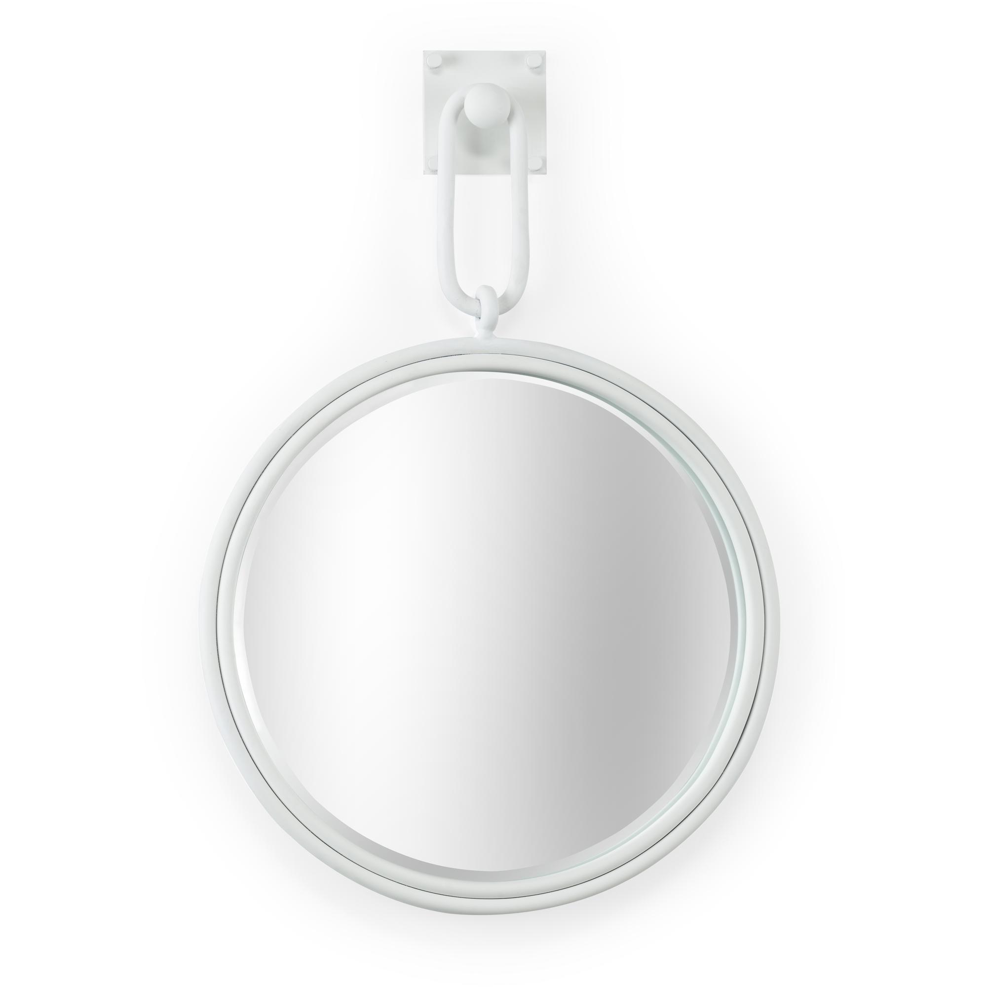 Open up your space while adding style with Grenada mirror. This versatile mirror features a simple white finish on a classic circular shaped iron frame. The modern design is suspended from a square wall hook for added dimension. Hang this large, beveled mirror over a sofa, credenza or cabinet in your living area to reflect your design aesthetic. (Available in other sizes and finishes)