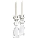 Two for the price of one, Gris Candlesticks are an elegant pair of candleholders that can be used with a taper, votive or 1-1/2″ pillar candles. Turn the clear crystal design for a different look.