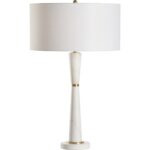 The elegant Guinevere Lamp is the perfect blend of timeless luxury and modern design. Crafted from smooth white marble, the lamp’s sleek, tapered silhouette is both refined and sophisticated. Brass accents strategically placed at the base and neck add a touch of warmth and a subtle hint of glamour, enhancing the lamp’s overall elegance. The crisp white drum shade offers a soft, ambient glow, creating a serene atmosphere in any room. Ideal for bedside tables, living rooms, or office spaces, this lamp brings a classic yet contemporary aesthetic that complements a variety of decor styles.
