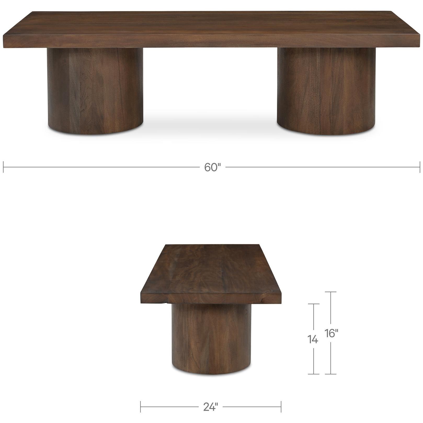 Reclaimed neem wood takes center stage in the Hadley coffee table as each piece tells its own story of thoughtful craftsmanship. The 2-inch thick rectangular top, supported by robust cylindrical bases, creates a grounded yet graceful silhouette.