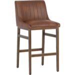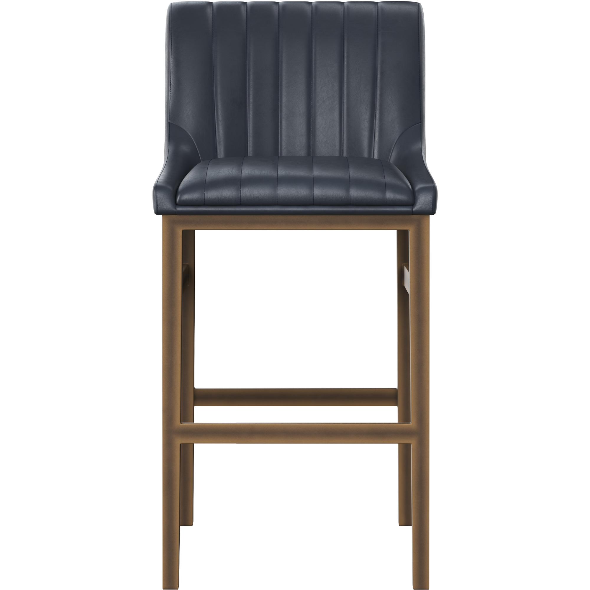 An urban designed stool featuring bold vertical channel tufting on the seat and back in bravo admiral faux leather. Finished with a rustic bronze steel frame and stretchers. Great for residential and commercial placements. Suitable for various dining, kitchen and bar spaces of all sizes. Handle With Care: This design has been crafted with faux leather. Faux leather is manufactured to reflect the natural characteristics of leather; as such, colour variations, markings, wrinkles, grooves, and light scratches are appreciated characteristics. No two pieces will be alike. Visit our Product Care page for more information on how to ensure the lasting beauty of this piece.