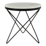 A glam white tabletop meets an intricate black base for this modern and attractive side table.