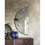 The curvilinear silhouette of this enchanting wall mirror serves up a healthy slice of modern style. With a half-moon shape that’s simply stunning, the semicircular looking glass is framed in iron and finished in satin brass. The elliptical mirror can be mounted in multiple directions for maximum design impact – as an eye-catching accent over a bedside table or above a doorway as a decorative transom.