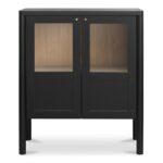 Thoughtfully designed, the Hannah cabinet balances transparency and concealment with tempered glass inserts. Crafted from solid pine, dowel legs and understated bronze hardware add a subtle softness, while the versatile finish complements diverse interior styles.