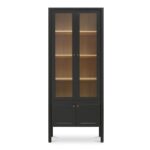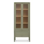 Inspired by classic millwork, the Hannah tall cabinet’s timeless proportions with tempered glass inserts offer a glimpse of treasured items, while a solid pine frame ensures enduring appeal as dowel legs and bronze hardware infuse subtle softness.