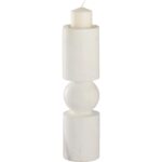 Made from carved marble, the Harper Candleholder features a sculptural silhouette with stacked geometric forms. Its smooth finish and natural veining add a refined, modern touch to any setting.