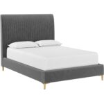 Add a touch of modern style to any bedroom space with this comfortable bed. Upholstered in casablanca cloud performance fabric, and features fine vertical tufting on the headboard. Completed with stainless steel gold legs. No box spring is required and slats are included. Performance fabric is moisture repellent, durable and easy to clean.