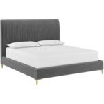 Add a touch of modern style to any bedroom space with this comfortable bed. Upholstered in casablanca cloud performance fabric, and features fine vertical tufting on the headboard. Completed with stainless steel gold legs. No box spring is required and slats are included. Performance fabric is moisture repellent, durable and easy to clean.