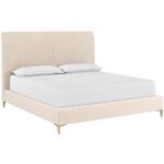 Add a touch of modern style to any bedroom space with this comfortable bed. Upholstered in casablanca storm performance fabric, and features fine vertical tufting on the headboard. Completed with stainless steel gold legs. No box spring is required and slats are included. Performance fabric is moisture repellent, durable and easy to clean.