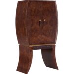 The Harvey Bar Cabinet is a striking blend of Art Deco elegance and modern sophistication. Crafted with luxurious mappa burl veneer, its curved silhouette and rich wood grain exude timeless charm. Inside, a mirrored back panel enhances the display, while dedicated compartments offer ample storage for glassware and spirits.
