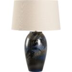 The Hatsu Table Lamp, part of the Shiga collection, is a stunning blend of traditional Japanese craftsmanship and modern design. Handcrafted with a unique combination of textured clay and a smooth, glossy glaze, this lamp embodies the balance between raw, natural elements and refined artistry. The deep indigo tones create a rich contrast against the rugged texture of the ceramic body, adding depth and dimension to the piece.