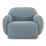The Hazel lounge chair embraces minimalist, understated elegance with its low-profile, modernist silhouette. Wrapped in exaggerated velvet fabric, it offers a distinct tactility and comfort. The bold, curved arm design makes a stylish statement, harmonizing with the sleek form to create an inviting focal point in any setting.