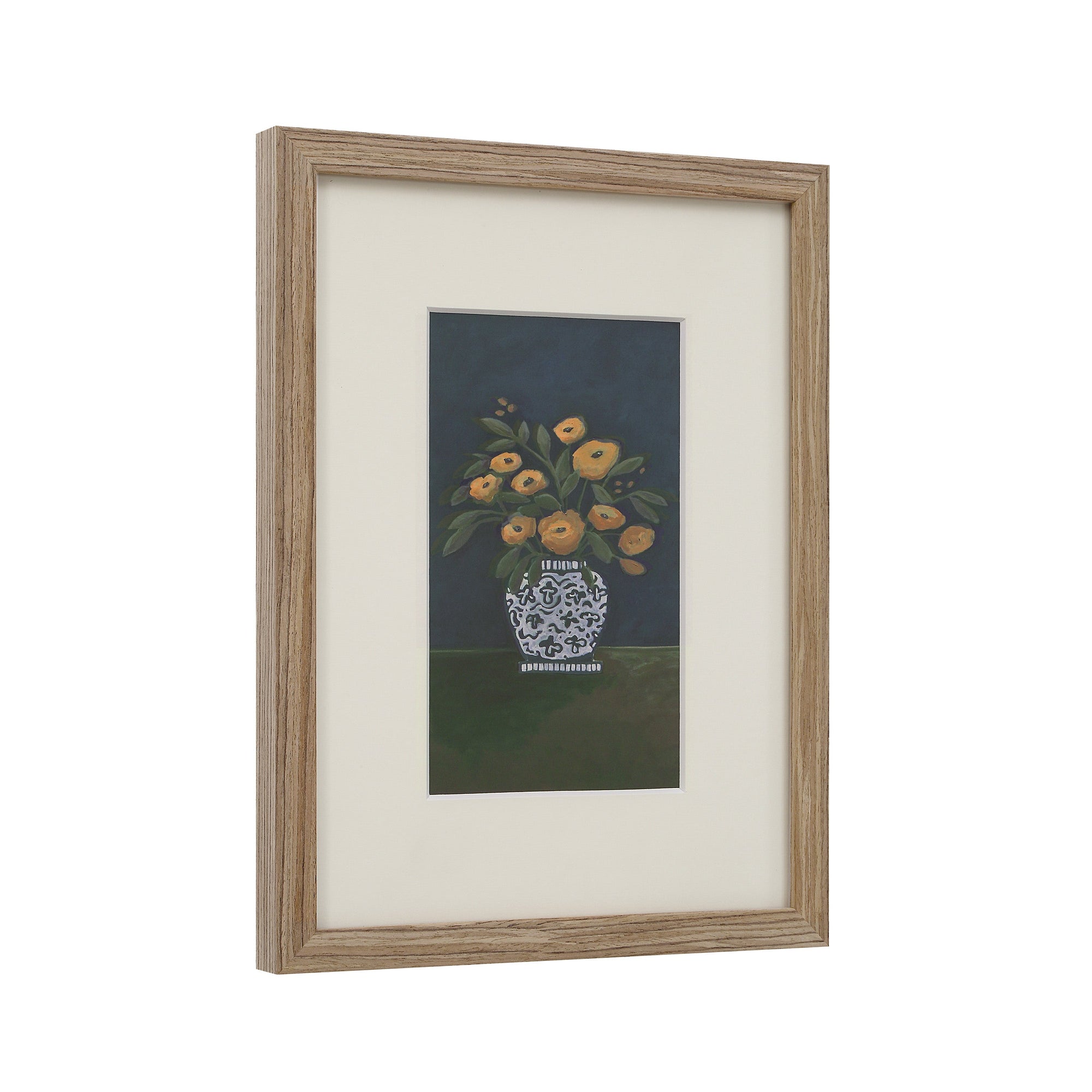 The Henriette bookshelf art commands attention with its striking botanical imagery and rich, moody tones. Set under glass with a beveled matboard and medium walnut frame, it delivers a bold, sophisticated statement that’s perfect for adding dramatic flair and timeless elegance to any curated space.