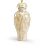 Cream glazed ceramic with metallic gold design and details, designed by Claire Bell.