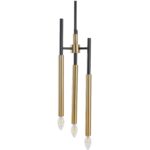 Create a dramatic ambiance with this stunning chandelier. Designed with three black and brass iron arms. Also available in a large size. Install in multiples for a dramatic effect.