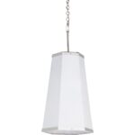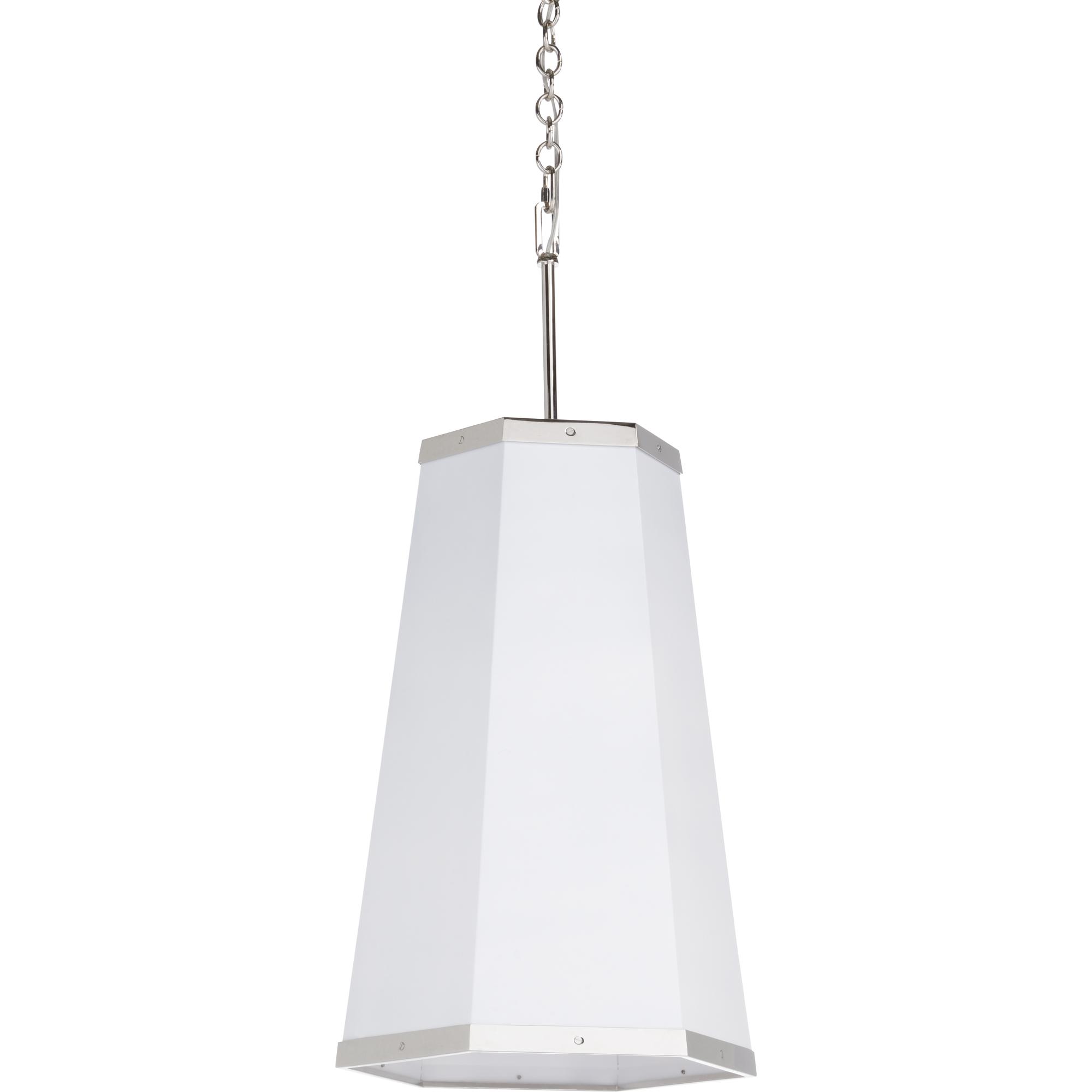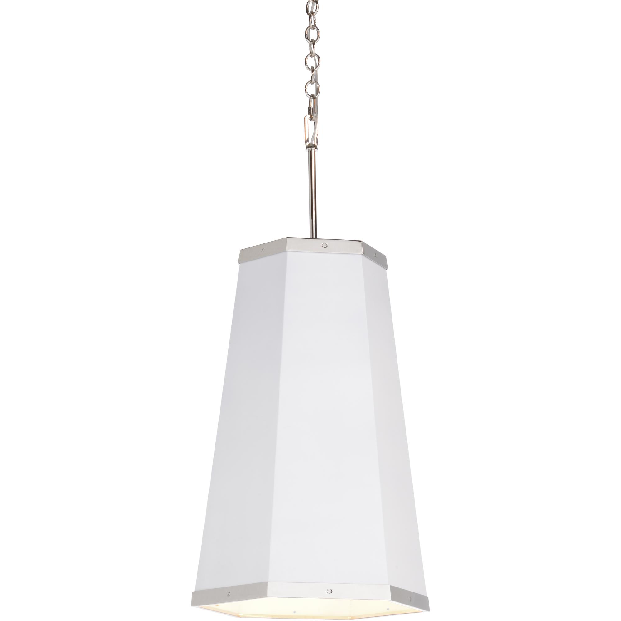 Ever the fan of a good hexagonal form, our High Street Hexagon Pendant is part of our High Street series featuring a refined, elongated hexagonal silhouette and a thoughtfully adorned polished nickel offset around the base. Make it your own by specifying the shade in any of Benjamin Moore’s amazing colors (65746-C). Comes with 6 feet of chain.